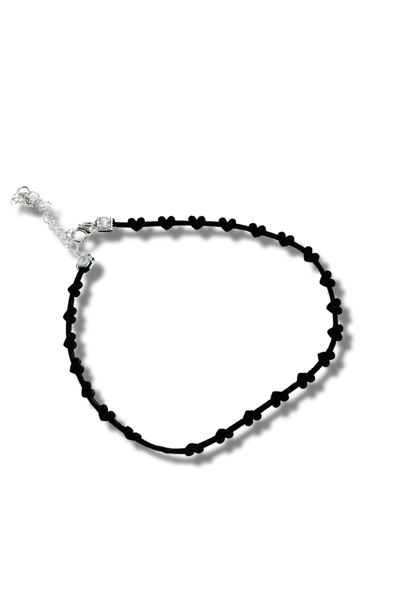 A soft black velvet ribbon scattered with tiny hearts — sweet, simple, and just the right amount of mischief.